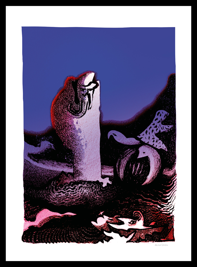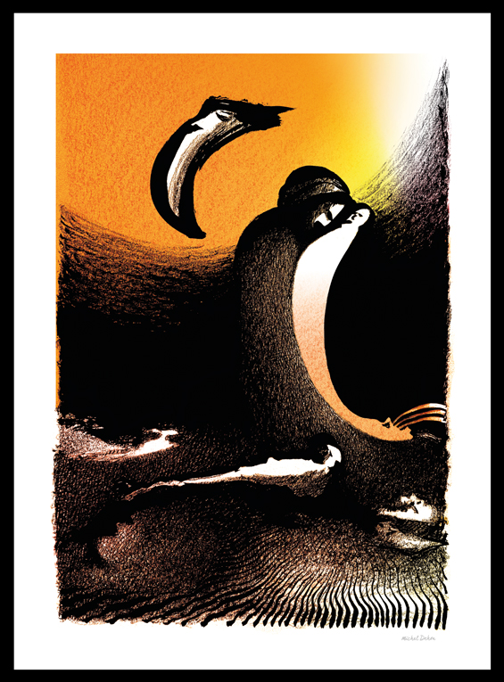 Mezcla de dos universos en los que el color ofrece una réplica inmediata a la tinta china. Uno desvela al otro, el color realza el trazo y lo acompaña en una creación nacida de la espontaneidad de su autor.