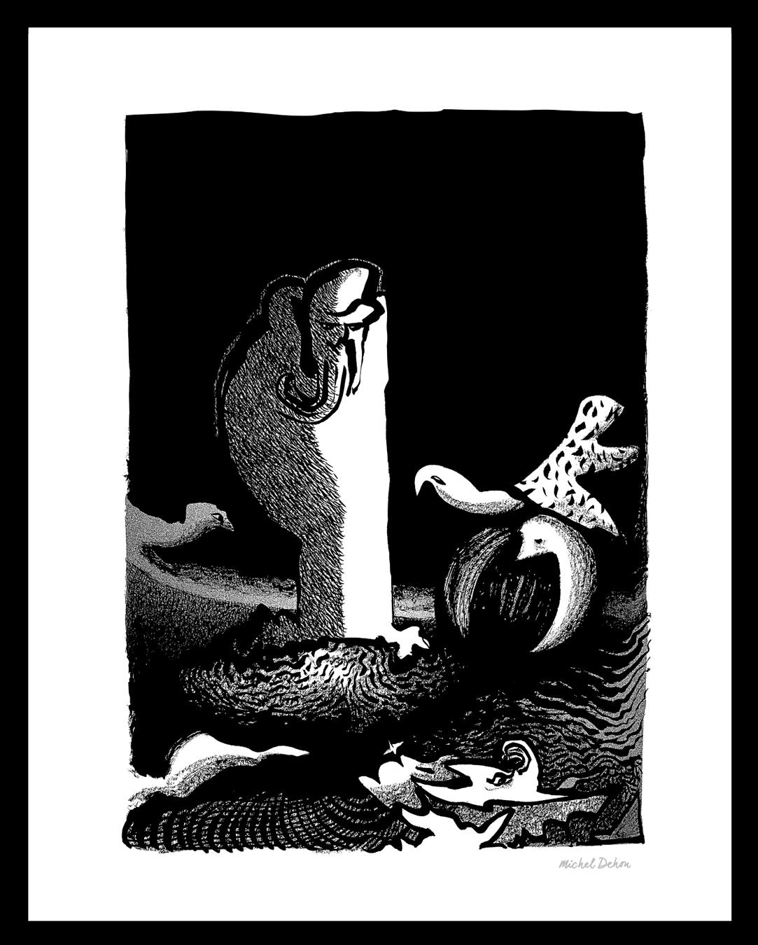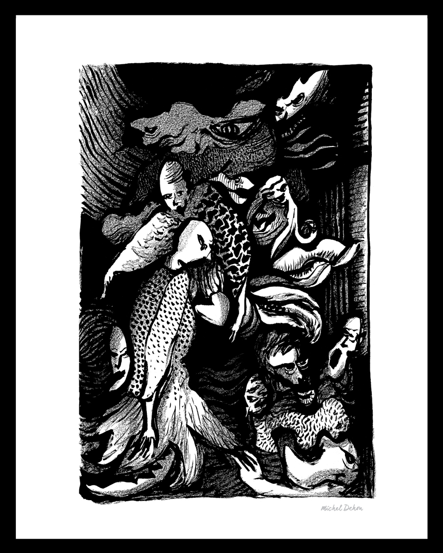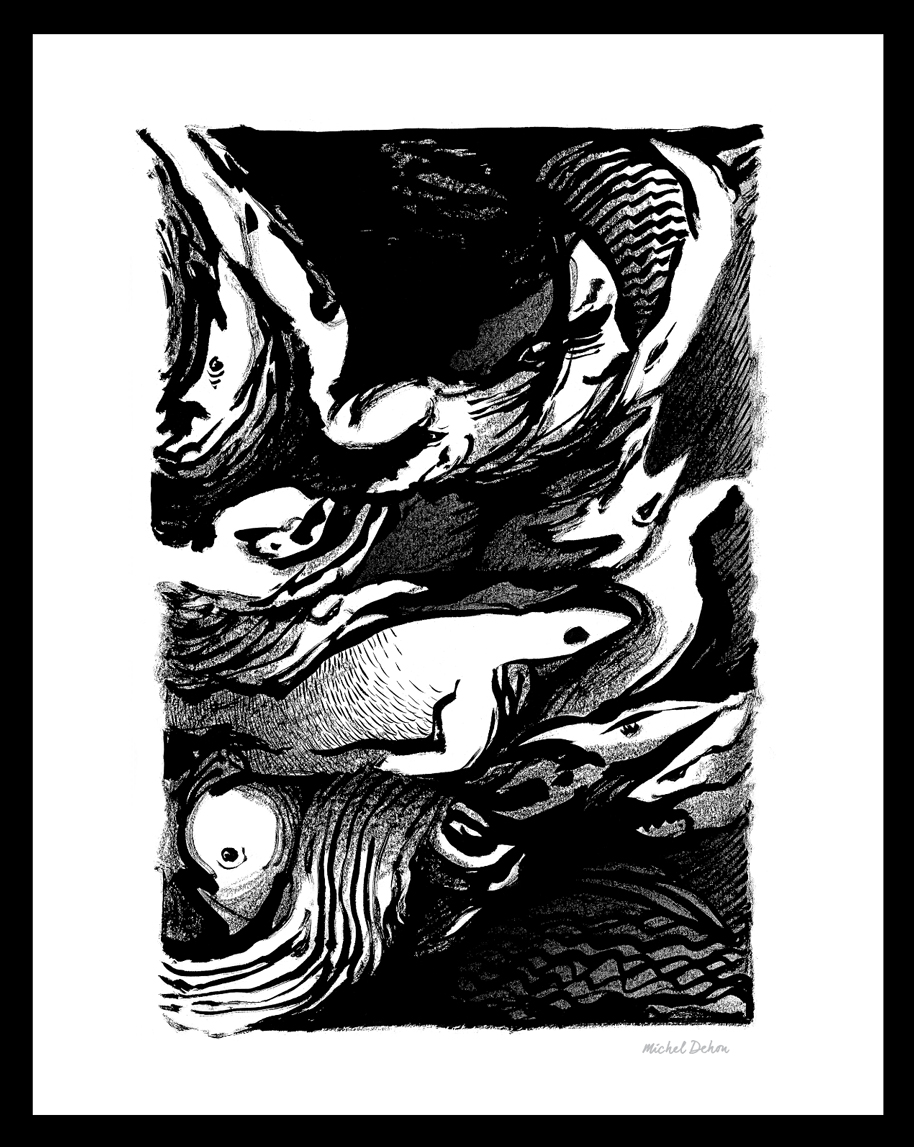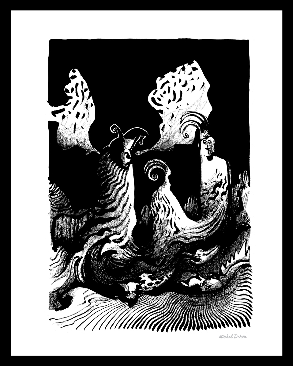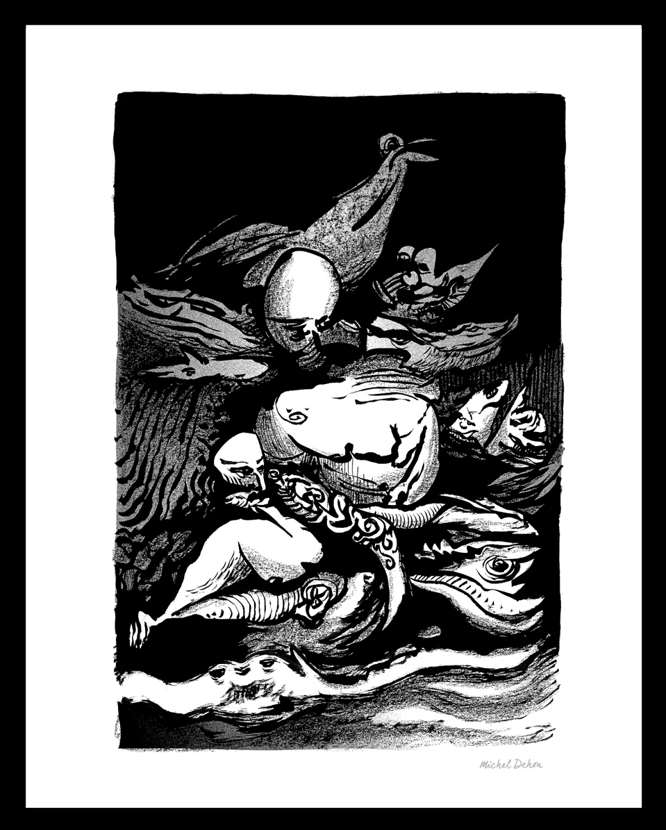 Qui se cache vraiment derrière un visage, une attitude, une personnalité? Là encore, le geste se libère, l’inconscient prend le dessus puis les personnages et les visages trouvent chacun leur place dans une composition équilibrée.